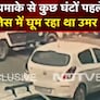 Swift Dzire से टक्कर के बाद छत तोड़ कार में घुसा ऊंट, JCB की मदद से निकलते ही दौड़ पड़ा