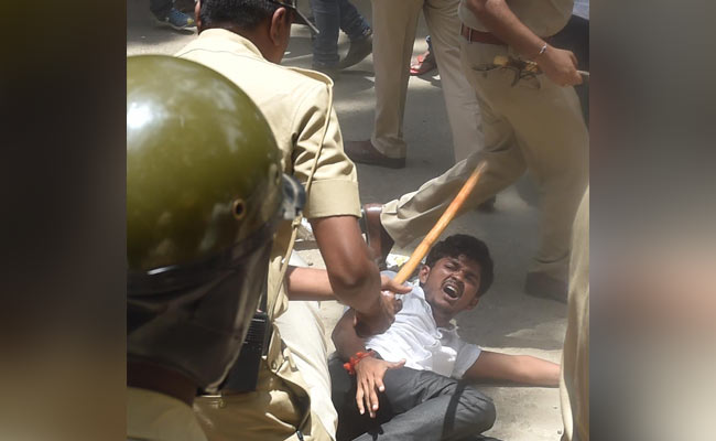 बेंगलुरु में एबीवीपी कार्यकर्ताओं पर पुलिस ने लाठी चार्ज किया.