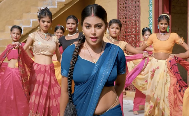 गाने में माही सखियों संग नीली साड़ी को लेकर बात के रही हैं कि अखियां में काजर लगाईं होठों पे लाली गुलाबी सजाईं जात बानी जब जब बजारिया ए साखी अब नाहीं पेहनब नीला साड़िया ए साखी लाइका मार ला सरोड पे नजरिया ए साखी.
