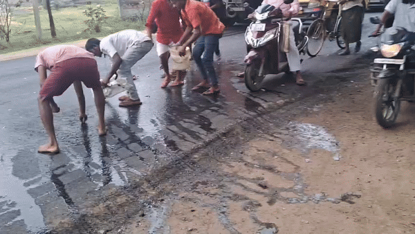 सड़क पर गिरते ही छोटे आकार की मछलियां इधर-उधर छटपटाने लगीं. यह देख आसपास मौजूद लोगों की भीड़ मौके पर जुट गई. कुछ लोग बर्तन लेकर पहुंचे तो कुछ बोरे में मछलियां भरने लगे. देखते ही देखते पूरा रोड मछली लूटने वालों से भर गया. माहौल ऐसा था कि हर कोई किसी भी तरह से अधिक से अधिक मछली ले जाना चाहता था.