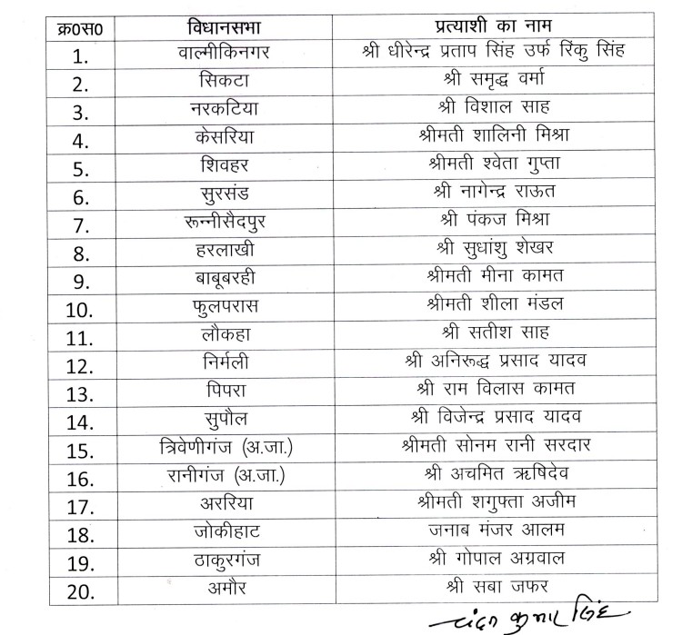 बिहार चुनाव के लिए NDA के सभी उम्मीदवार घोषित