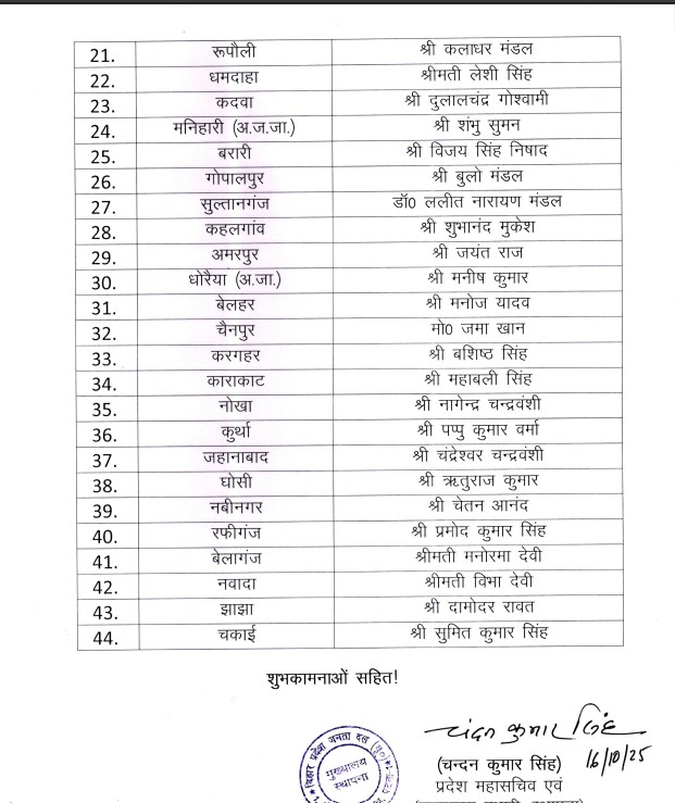 जदयू की दूसरी लिस्ट में शामिल हैं ये नाम