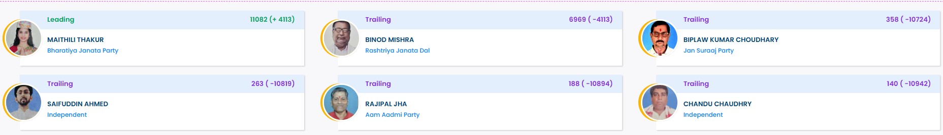 मधुबनी की 9 विधानसभा सीटों पर कौन आगे, कौन पीछे