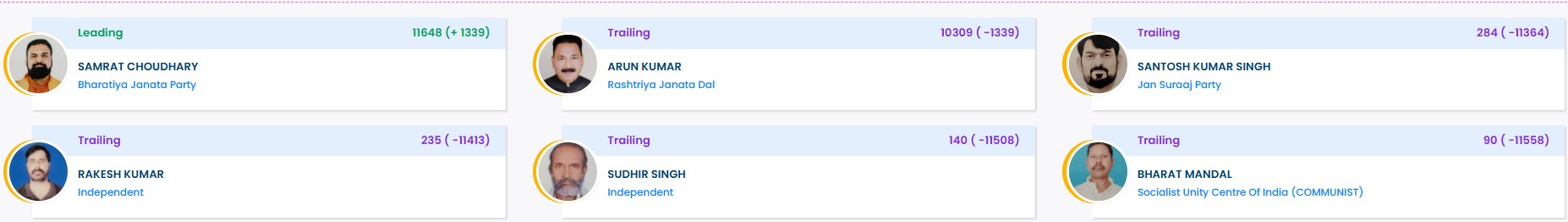Bihar Election Result 2025 LIVE: तारापुर से सम्राट चौधरी को मिल रही कड़ी टक्कर