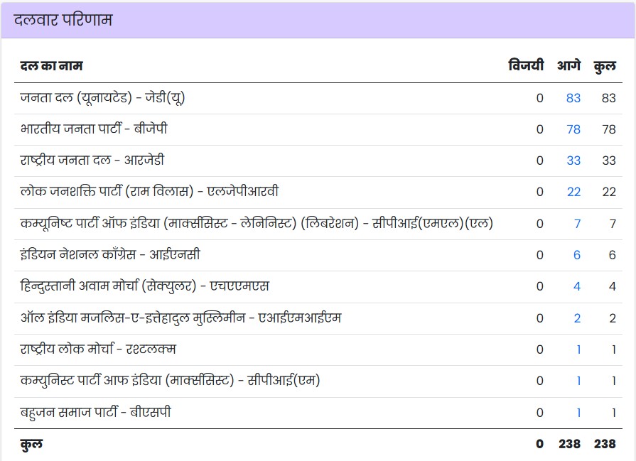 सभी 243 सीटों के नतीजे देखें