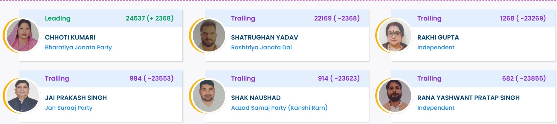 - सासाराम से स्नेहलता कुशवाहा पीछे चल रही हैं.