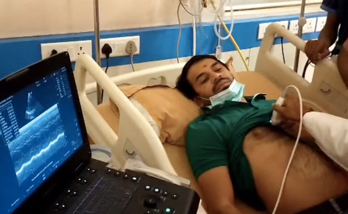 मंत्री तेजप्रताप यादव की अस्पताल में जांच की गई.
