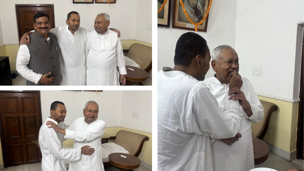 जनता दल यूनाइटेड ज्वाइन करने के बाद बेटे निशांत कुमार नीतीश कुमार से मिलने उनके पटना स्थित सीएम हाउस पहुंचे. निशांत के साथ संजय झा भी मौजूद थे. बेटे ने पिता को गले लगाया और खास मौके पर मुंह भी मीठा कराया.