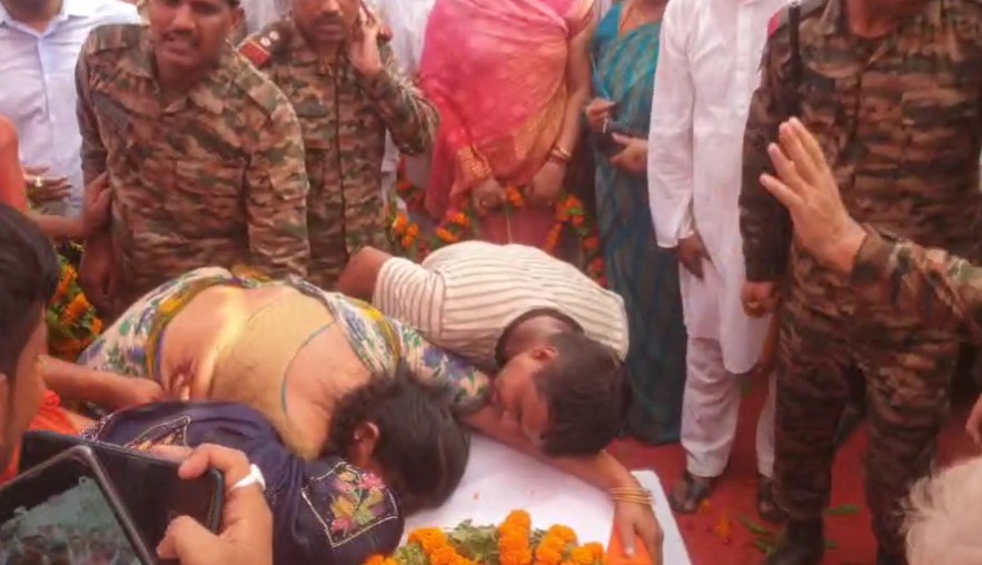 हालांकि इस दौरान तब लोगों की आंखें नम हो गई, जब रामबाबू के परिजन अपने बेटे के पार्थिव शरीर पर सिर रखकर जोर-जोर से रोते नजर आए.