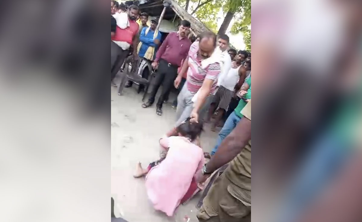 वायरल वीडियो में दिख रहा है कि लोगों की भीड़ के बीच में युवक व किशोरी घिरी हुई है. दो व्यक्ति पहले युवक की डंडे से पिटाई करते हैं, फिर किशोरी को बुलाकर बाल पकड़कर घसीटते हुए मारपीट करते हैं. डंडे से भी उसकी पिटाई की जाती है.