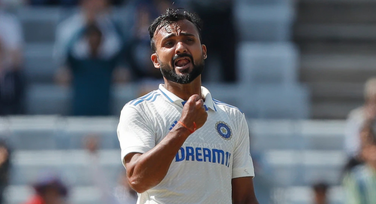 इंग्लैंड के ख़िलाफ़ बर्मिंघम टेस्ट में 10 विकेट लेने के बाद आकाश दीप.