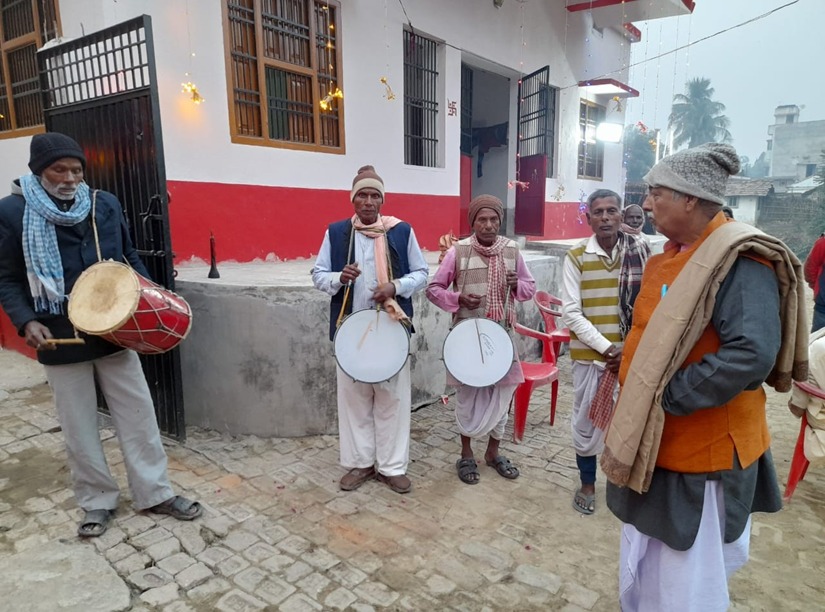 आधुनिक ‘डीजे' के बदले बिस्मिल्लाह खान की शहनाई धीमी धीमी बज रही थी. और पारंपरिक ढोलक जिसे यहां आमतौर पर एक जाति विशेष के द्वारा बजाया जाता है, बजाये जा रहे थे. इन वाद्य यंत्रों की थपक मुहूर्त के शुभ होने को और अधिक शुभ बना रही थी.