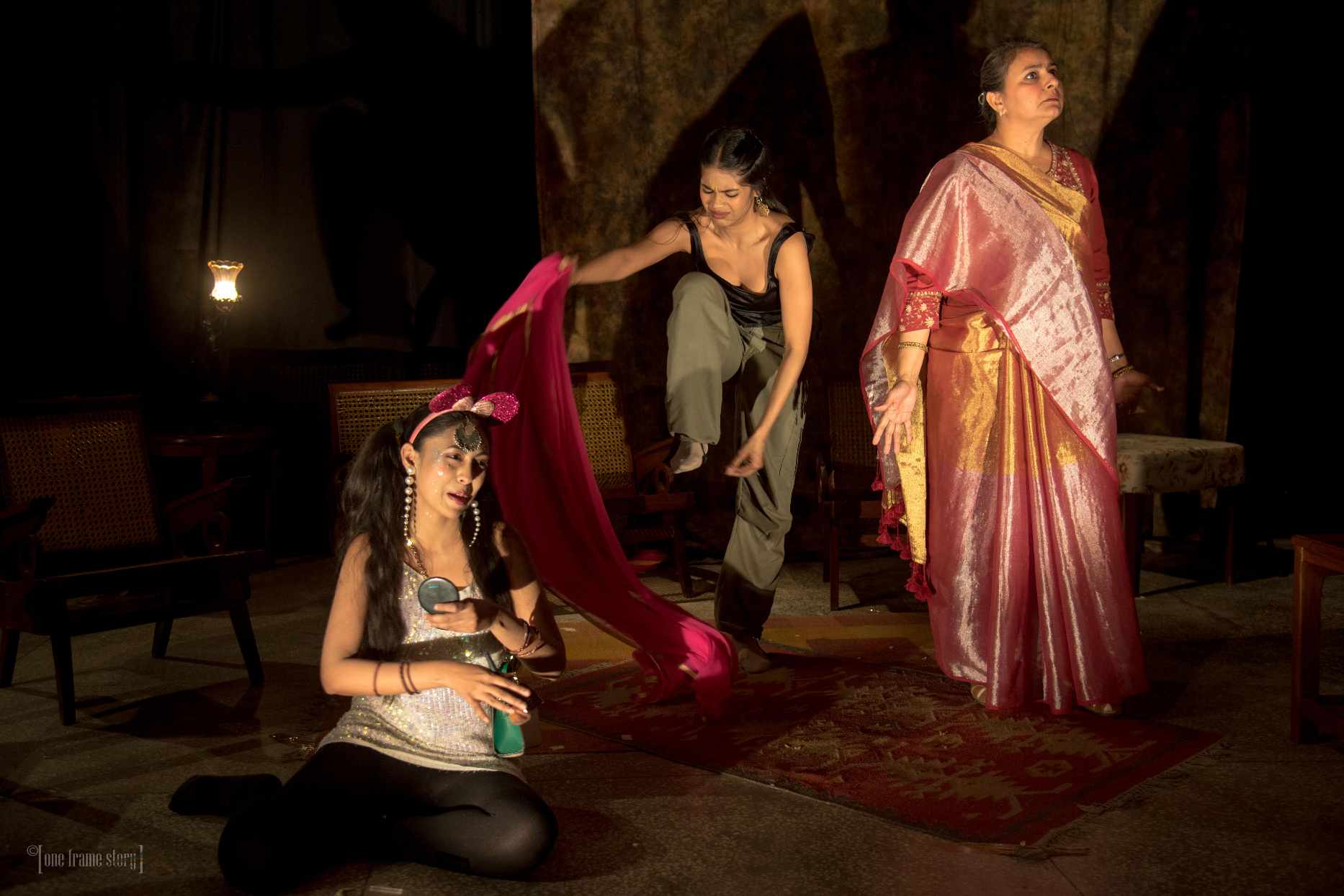 नाटक के हर भाग की समाप्ति पर कलाकार गाना गा रहा था, नए भाग की तैयारी करने के लिए इतना समय कलाकारों के लिए काफी था. चौथे और पांचवें हिस्से ने नाटक ने जान फूंकी. दर्शक फ्रेम में रहे दादाजी को देखकर हंसते भी रहते हैं क्योंकि फ्रेम टांगकर किसी मरे इंसान को जिंदा कर संवाद बोलने की कल्पना की भी नहीं जा सकती है.