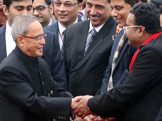 थोड़ी बहुत बातचीत के बाद राष्ट्रपति प्रणव दा और प्रधानमंत्री नरेन्द्र मोदी अन्य लोगों से मिलने निकल पड़े। मोदी हमारी तरफ तो नहीं आए मगर प्रणब दा जरूर मिलने पहुंचे। हमने और हिमांशु ने प्रणब दा से हाथ मिलाया। मैंने उनसे पूछा कि आपकी तबियत कैसी है, दादा ने कहा ठीक हूं।