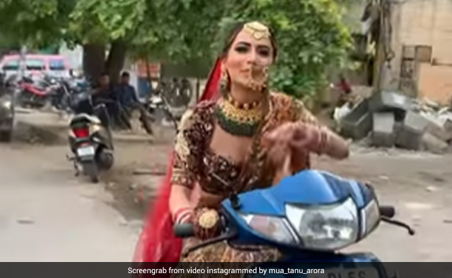 monika_arora_mua नाम की एक इंस्टाग्राम हैंडल ने एक वीडियो शेयर किया है. इस वीडियो में एक लड़की अपनी शादी से बचने के लिए स्कूटी से भागती दिखाई दे रही है. वीडियो में लड़की ब्राइडल लहंगे में देखा जा सकता है. इसके साथ ही उसने ब्राइडल ज्वेलरी और मेकअप भी किया हुआ है. वीडियो में लड़की ब्लू कलर की स्कूटी चलाती हुई नजर आ रही है.