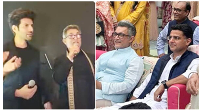 वीडियो में आमिर खान ट्रेडिशनल आउटफिट में नजर आ रहे हैं. वह एक्टर कार्तिक आर्यन के साथ स्टेज शेयर करते नजर आ रहे हैं. एक वीडियो में वे कार्तिक आर्यन संग अपनी फिल्म 3 इडियट्स के गाने ‘जुबी डुबी जुबी डुबी' पर डांस कर रहे हैं. वहीं एक दूसरे वीडियो में वह अपनी हिट फिल्म राजा हिंदुस्तानी का गाना ‘आए हो मेरी जिंदगी में तुम बहार बन के' गाते नजर आ रहे हैं. यह गाना एक्ट्रेस करिश्मा कपूर और आमिर खान पर फिल्माया गया था. यह वीडियो तेजी से वायरल हो रही है और आमिर खान को गाते हुए लोग खूब पसंद कर रहे हैं.