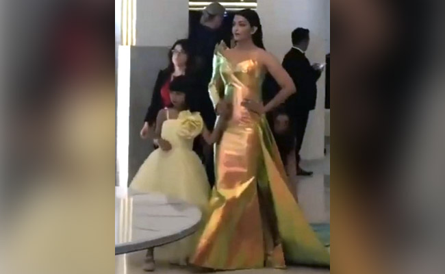 वायरल हो रहे इस वीडियो को ऐश्वर्या राय बच्चन के फैन पेज से शेयर किया गया है. वीडियो में आप गॉर्जियस लुक में ऐश्वर्या को देख सकते हैं. ऐश्वर्या की स्टाइलिश वन शोल्डर गोल्डन ड्रेस उन पर बहुत जंच रही है. वहीं आराध्या बच्चन अपनी मां का हाथ थामे येलो कलर के खूबसूरत से फ्रॉक में बहुत ही प्यारी लग रही हैं. वीडियो में ऐश्वर्या कमर पर हाथ रख वॉक कर रही हैं, जबकि आराध्या की वॉक भी वीडियो में देखने लायक है. वीडियो में आराध्या टुकुर-टुकुर इधर-उधर निहार रही हैं और मां का हाथ पकड़े चल रही हैं. आराध्या की क्यूटनेस पर लोग फिदा हुए जा रहे हैं.