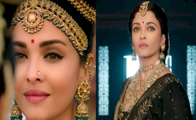इस लुक में ऐश्वर्या राय पूरी तरह गहनों से लदी हुई नजर आ रही हैं. हर गहना साउथ इंडिया के पुराने ट्रेडिशन की खास पहचान है. बालों पर भारी माथा पट्टी, कान में भारी झुमके. नाक में दोनों ओर नोज पिन और गले से सटा चोकर. झील सी गहरी आंखों को भी मोटे आईलाइनर से सजाया गया है. इस बाकमाल लुक में ऐश्वर्या राय की खूबसूरती देखने लायक है.