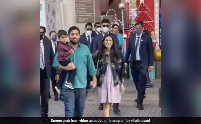 आकाश अंबानी और श्लोका मेहता ने अपने बेटे पृथ्वी अंबानी के लिए एक ग्रैंड बर्थडे पार्टी का आयोजन किया. पृथ्वी 10 दिसंबर को 2 साल का हो गए है. कपल ने सोमवार यानी 2 जनवरी को जियो गार्डन में अपने बेटे के लिए एक पार्टी का आयोजन किया. आकाश अंबानी बेटे पृथ्वी और श्लोका के साथ वेन्यू तक जाते दिखे. जाने से पहले तीनों ने पापराज़ी के लिए पोज़ दिया. सोशल मीडिया पर वायरल हो रहे वीडियो में देखा जा सकता है कि वेन्यू पेंगुइन-थीम वाला विंटर वंडरलैंड है. पृथ्वी कैमरों की ओर गौर से देखते नजर आए. उन्होंने पैंट के साथ फलालैन शर्ट पहनी हुई थी. उनकी मां श्लोका ने ड्रेस के साथ जैकेट और शूज पहना था.
