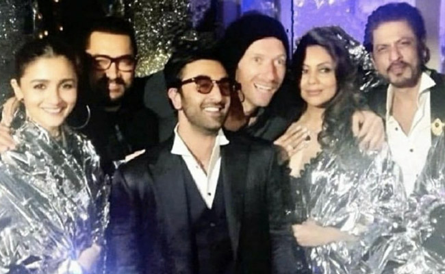 सोशल मीडिया पर वैसे तो पार्टी में जाते हुए सितारों की कई फोटोज सामने आई हैं, लेकिन आलिया और रणबीर का दीदार बहुत ही कम लोगों को हो पाया. ऐसे में हम आपके लिए रिसेप्शन पार्टी की एक अनदेखी फोटो लेकर आए हैं, जिसमें आलिया-रणबीर के साथ, आमिर खान, शाहरुख खान और उनकी पत्नी गौरी नजर आ रही हैं. ये सभी ब्लैक कलर की आउटफिट में हैं. वहीं करिश्मा कपूर ने भी एक फोटो अपने इंस्टाग्राम पर शेयर की है, जिसमें वे रणबीर और आलिया के साथ नजर आ रही हैं. इस दौरान आलिया को सिल्वर कलर की ड्रेस में देखा जा सकता है और उनके हाथ में वाइन की ग्लास भी है.