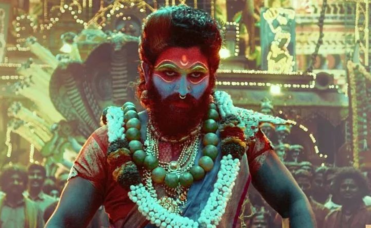 टीजर में दिखाया गया है कि एक जातरा (मंदिर उत्सव) हो रही है. इसमें कई लोग प्रार्थना कर रहे हैं और देवी के नाम का जाप कर रहे हैं. इसके बाद सीन में आते हैं अल्लू अर्जुन. अल्लू इस टीजर में ऐसे लुक में नजर आए जो ना तो पूरी तरह फीमेल है ना ही मेल. उनके लुक में पुरुष और स्त्री दोनों का मिक्स दिखता है. जैसी उनकी दाढ़ी है, घुंघराले बाल हैं, जिस तरह वो चलते हैं बहुत ही मर्दाना लगता है लेकिन जिस तरह वो अपनी साड़ी संभालते हैं, उनकी आंखों का काजल, लंबे नाखून, घुंघरू, झुमका, चूड़ियां सब है और एक सीन में वो गुंडों को पीटते भी दिखते हैं.