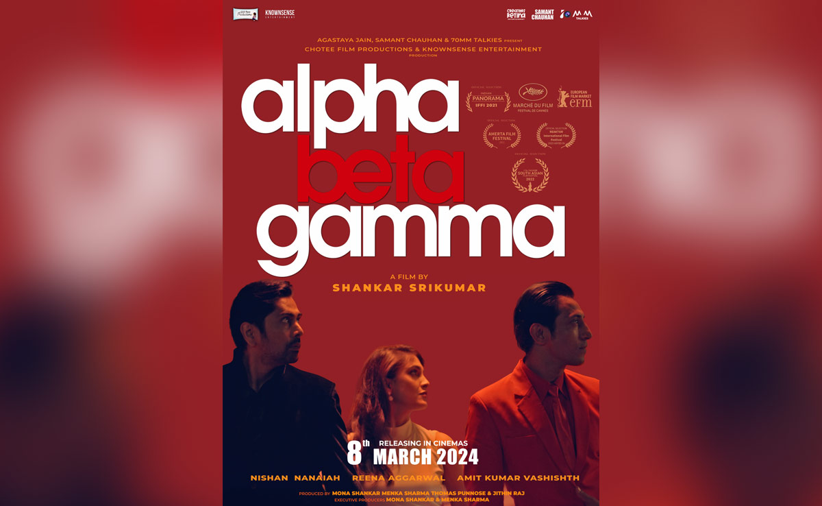 कान फिल्म फेस्टिवल में धमाल मचाने के बाद श्रीकुमार शंकर की पहली फिल्म "अल्फा बीटा गामा" अब थियेटर में रिलीज़ हो रही है. जरा सोचिए, कोरोना काल में पहले लॉकडाउन के दौरान एक आदमी, उसकी पत्नी और पत्नी का ब्वॉयफ्रेंड एक ही घर में 14 दिनों के लिए बंद हो गए हों तो उसका नज़ारा क्या होगा? क्या होगा घर के अंदर का माहौल? कुछ ऐसे ही मसालेदार तड़के के साथ एक लव स्टोरी फिल्म देश भर के सिनेमाघरों में आ रही है 8 मार्च को जिसका नाम है "अल्फा बीटा गामा".