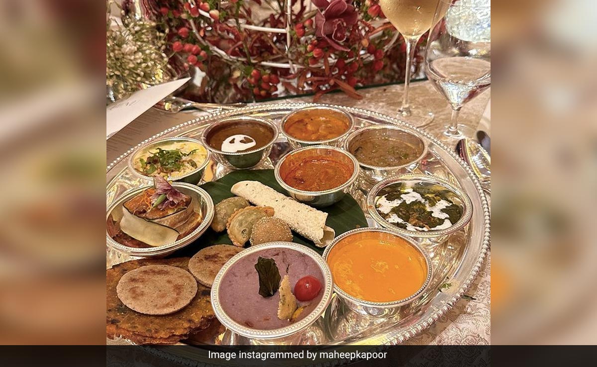 इंस्टाग्राम पर खासी एक्टिव रहने वाली महीप कपूर ने भी पकवानों से भरी थाली की पिक्स शेयर की है. लजीज पकवान जिस थाली और कटोरी में रखे गए हैं वो सभी चांदी के हैं. जिसमें देसी पकवानों का भोग सजा हुआ दिखाई दे रहा है. इस बड़ी सी थाली में बहुत से बाउल्स रखे हैं, जिसमें मिलेट रोटी, सब्जी, दाल, कढ़ी, दाल, पापड़ जैसी डिशेज तो हैं ही, खाने के बाद मुंह मीठा करने के लिए भी बहुत कुछ है. हलवा, गुझिया और लड्डू भी इस आलीशान थाली में रखे नजर आएंगे.