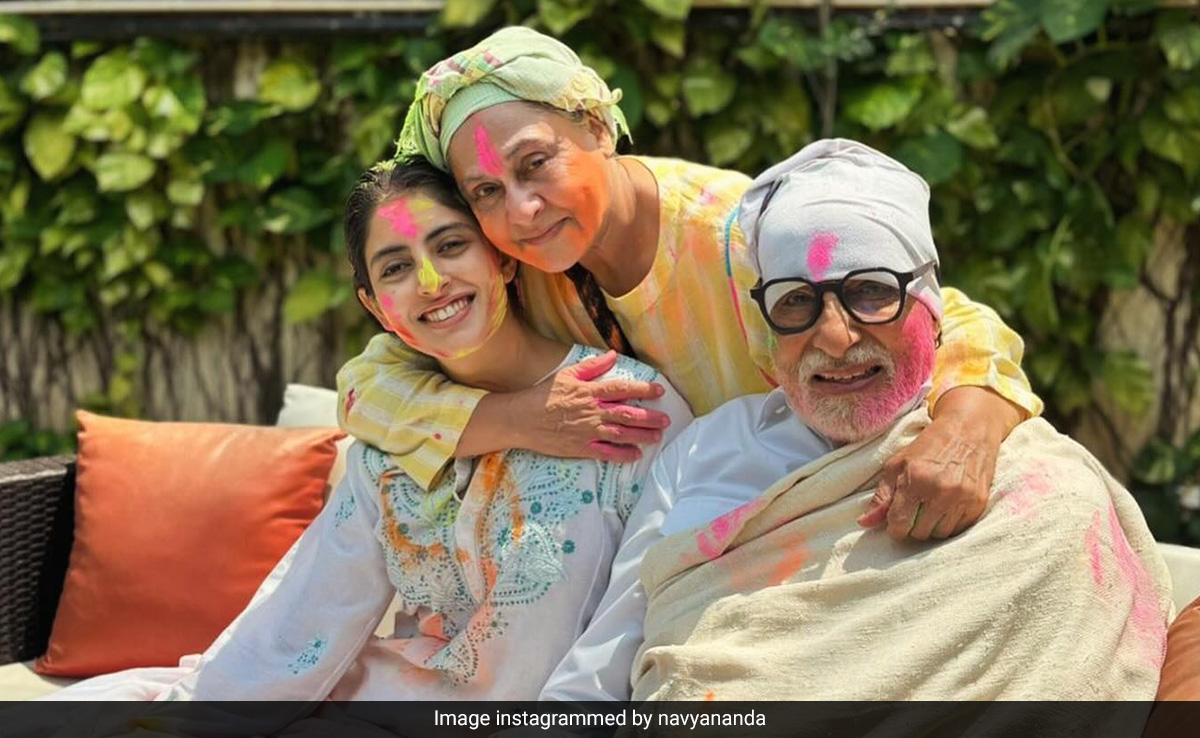 होली पर कुछ फिल्मी परिवारों की तस्वीरों का इंतजार रहता है. ऐसा ही एक नाम बच्चन परिवार का भी है. अमिताभ बच्चन ने अपने परिवार के सदस्यों के साथ किस तरह होली मनाई, यह जानने का हर किसी को बहुत ही बेसब्री से इंतजार रहता है. लीजिए अमिताभ बच्चन की नातिन नव्या नंदा ने इस रहस्य पर से परदा उठा दिया है. नव्या ने नाना अमिताभ बच्चन, नानी जया बच्चन और मां श्वेता बच्चन के साथ होली सेलिब्रेशन की तस्वीरें सोशल मीडिया पर शेयर की हैं. हालांकि इन फोटो में उनका भाई अगस्त्य नंदा नजर नहीं आ रहा है. वहीं, फैन्स ऐश्वर्या राय बच्चन को लेकर भी सवाल पूछ रहे हैं.