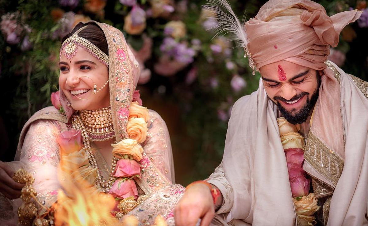 विराट कोहली और अनुष्का शर्मा की शादी अब तक की सबसे खूबसूरत शादियों में से एक थी! तस्वीर में अपनी गर्लफ्रेंड के साथ शादी करते हुए विराट के चेहरे पर सबसे ज्यादा खुशी दिख रही है. तस्वीर शेयर करते हुए एक्ट्रेस ने लिखा, "आज हमने एक-दूसरे से हमेशा के लिए प्यार में बंधे रहने का वादा किया है. हम असल में आपके साथ यह खबर शेयर करते हुए बहुत खुशी महसूस कर रहे हैं. हमारे परिवार के प्यार और सपोर्ट से यह खूबसूरत दिन और भी खास बन जाएगा. हमारे सफर का इतना अहम हिस्सा बनने के लिए शुक्रिया."