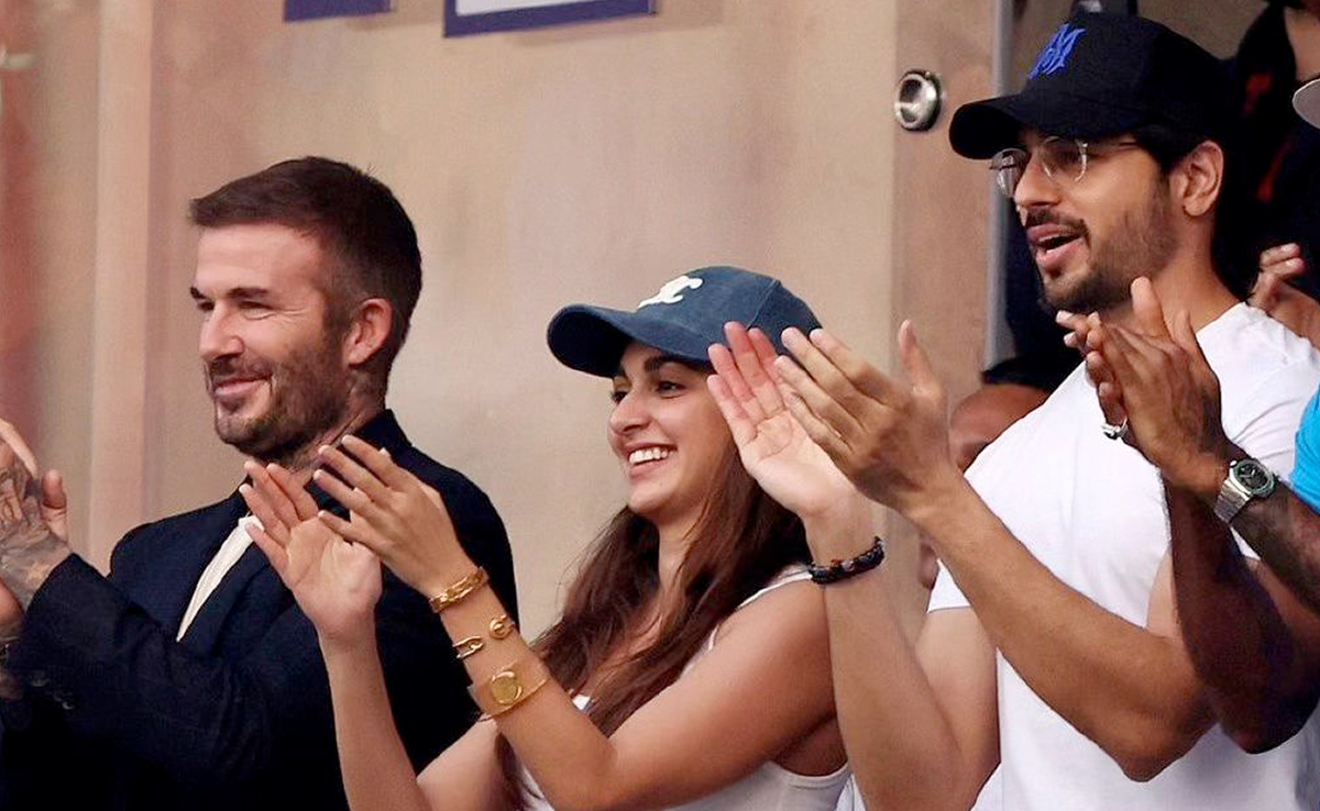 अगर इंडिया और न्यूजीलैंड के बीच वर्ल्ड कप मैच के दौरान मैदान पर विराट कोहली और अनुष्का शर्मा के अनकंडिशनल लव से बहुत ही इंप्रेस्ड हैं ? इनके अलावा वहां एक और कपल था जो कपल गोल्स सेट करने में किसी से पीछे नहीं था. यह कपल था कियारा आडवानी और सिद्धार्थ मल्होत्रा. एक तरफ डेविड बेकहम दूसरी तरफ सिद्धार्थ मल्होत्रा और बीच में कियारा आडवानी ऐसा तो किसी क्रिकेट मैच के दौरान ही हो सकता है. कुछ ऐसा ही हाल इंडिया और न्यूजीलैंड के मैच के बीच भी देखने को मिला. कियारा और सिद्धार्थ ने मैच देखने आए ऑडियंस का खूब ध्यान खींचा दोनों ट्विनिंग कर स्टेडियन पहुंचे थे. व्हाइट कलर की टीशर्टर्स में दोनों कैजुअल लुक में बेहद कूल लग रहे थे.