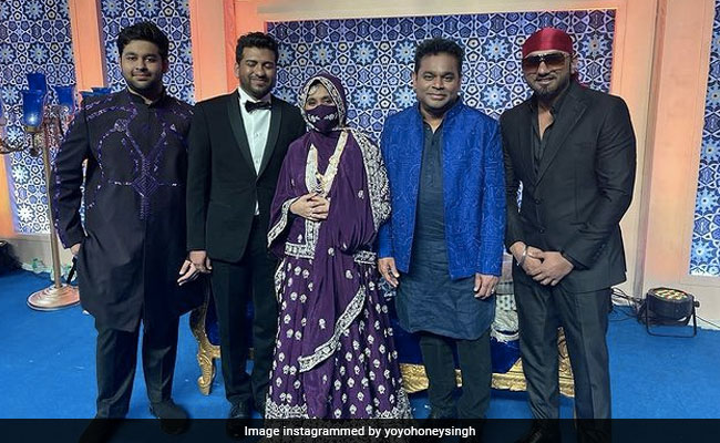 यो यो हनी सिंह ने अपने इंस्टाग्राम पर एक तस्वीर शेयर की है, जिसमें वे एआर रहमान की बेटी खातिजा के रिसेप्शन पार्टी में शिरकत करते हुए दिखाई दे रहे हैं. फोटो में आप हनी सिंह को एआर रहमान और उनकी फैमिली के साथ पोज करते हुए देख सकते हैं. मिली जानकारी के अनुसार 10 जून 2022 को इस रिसेप्शन पार्टी का आयोजन किया गया था. अपनी रिसेप्शन पार्टी में खातिजा ने पर्पल कलर की ड्रेस के साथ मैचिंग नकाब पहना था. वहीं उनके हसबैंड रियासदीन ब्लैक कलर के टक्सीडो में बेहद हैंडसम नजर आए. जबकि ब्लू कोट के साथ कुर्ता पायजामा में एआर रहमान भी भी कुछ कम नहीं जंच रहे थे.