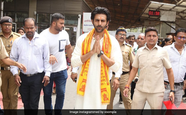 सिद्धिविनायक मंदिर के दर्शन करते हुए अभिनेता की तस्वीरों को सेलिब्रिटी फोटोग्राफर voompla ने अपने आधिकारिक इंस्टाग्राम अकाउंट पर शेयर किया है. तस्वीरों में कार्तिक आर्यन व्हाइट कलर के कुर्ते और ब्लू जींस में दिखाई दे रहे हैं. इसके साथ उन्होंने येलो कलर का गम्छा भी अपने गले में डाला हुआ है. कार्तिक आर्यन ने सिद्धिविनायक मंदिर में पहुंचकर अपनी फिल्म 'भूल भुलैया 2' की सफलता के लिए कामना की है.