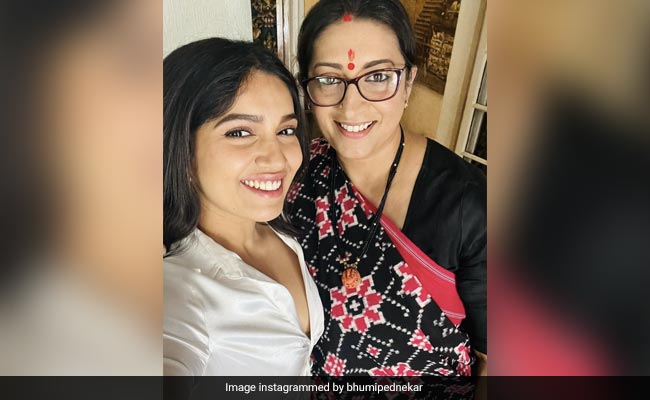 सामाजिक मुद्दों पर बनी फिल्मों में नजर आने वाली एक्ट्रेस भूमि पेडनेकर ने मंगलवार को केंद्रीय मंत्री स्मृति ईरानी से मुलाकात की और इस मुलाकात के दौरान ली गई एक तस्वीर अपने सोशल मीडिया अकाउंट से शेयर की. इस सेल्फी को पोस्ट करते हुए भूमि ने स्मृति ईरानी की खूब सराहना की है. हालांकि भूमि को स्मृति ईरानी के साथ देख कर कई सारे यूजर्स ने उनकी खिंचाई भी कर डाली. भूमि पेडनेकर ने अपने ऑफिशियल इंस्टाग्राम अकाउंट से केंद्रीय मंत्री स्मृति ईरानी के साथ ये तस्वीर पोस्ट की है. तस्वीर में भूमि सफेद शर्ट पहने नजर आ रही हैं तो वहीं स्मृति ईरानी ब्लैक प्रिंटेड साड़ी पहने हुए दिखाई दे रही हैं. तस्वीर में स्मृति ईरानी पहले से काफी बदली हुई नजर आ रही हैं, उनका वजन काफी कम नजर आ रहा है.