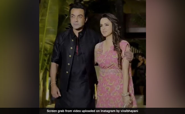 इस मौके पर बॉबी देओल ब्लैक कलर के कुर्ते में दिखाई दिए वे ही नहीं बल्कि उनके साथ उनकी पत्नी तान्या देओल भी दिखाई दे रही हैं. इस दौरान तानया पिंक कलर की साड़ी पहने खुले बालों में दिख रही हैं. दोनों की केमिस्ट्री देख फैन्स कमेंट करते थक नहीं रहे हैं.