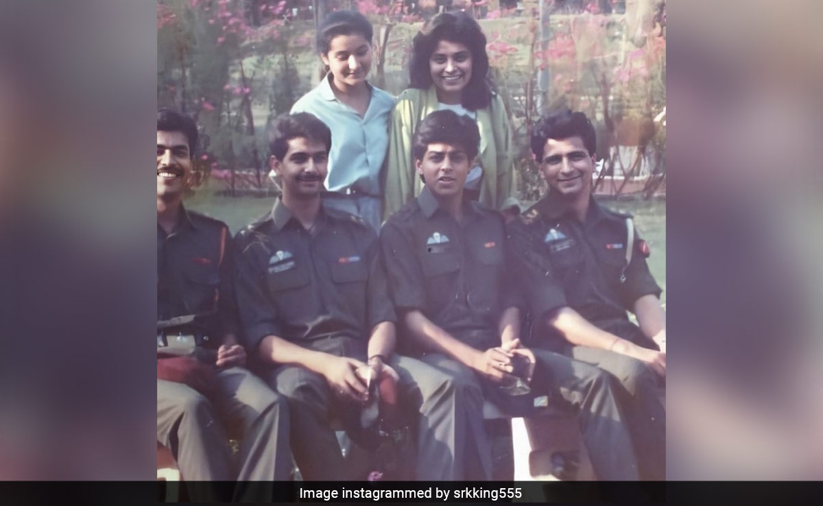 भारतीय सशस्त्र बल की यूनिफॉर्म पहने इन 4 जवानों की तस्वीर को जरा ध्यान से देखिए. फौजियों के बीच आपको एक ऐसा चेहरा भी नजर आएगा जो बॉलीवुड का किंग हैं. अगर ध्यान से देखने पर भी आप गैस नहीं कर पाए, तो हम आपको बता दें लेफ्ट से दूसरे नंबर पर बैठा शख्स कोई और नहीं बल्कि बॉलीवुड के किंग शाहरुख खान हैं, जो अपने जवानी के दौर में बेहद क्यूट और मासूम लग रहे हैं. बता दें कि ये तस्वीर शाहरुख खान के सीरियल फौजी के दौरान की है, जिसमें वो खुद पेड़ पर कौए गिरने का काम करते थे.