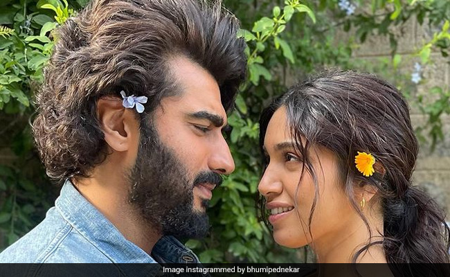 भूमि पेडनेकर ने अर्जुन कपूर के साथ इंस्टाग्राम पर अपनी कुछ तस्वीरें शेयर की हैं. इन फोटोज की बात की जाए तो पहली फोटो में अर्जुन और भूमि एक दूसरे की तरफ देखते हुए काफी रोमांटिक पोज दे रहे हैं और दोनों ने अपने बालों में फूल लगा रखा है. तो वहीं बाकी की तस्वीरों में आप देखेंगे कि अर्जुन और भूमि एक दूसरे के साथ मस्ती करते नजर आ रहे हैं. एक वीडियो में तो अर्जुन भूमि को गोद में उठाते हुए भी दिख रहे हैं. दोनों के लुक की बात की जाए तो इसमें भूमि पेडनेकर ने ब्लैक कलर का डीप नेक टॉप पहना हुआ है. इसके साथ उन्होंने ब्लैक और व्हाइट फ्लोरल स्कर्ट कैरी की है. तो वहीं अर्जुन कपूर हमेशा की तरह काफी कूल लग रहे हैं और उन्होंने ब्लैक पेंट के साथ ब्लू कलर की डेनिम शर्ट पहन रखी है.