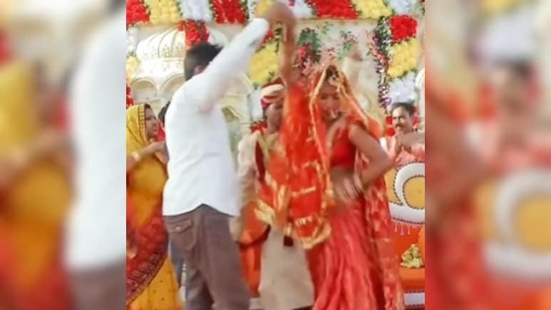 अपनी शादी की खुशी तो हर इंसान को होती है. ये एक ऐसा खास दिन होता है जब दूल्हा और दुल्हन सेंटर ऑफ अट्रैक्शन होते हैं. साथ ही ये जीवन का एक नया दौर और नई शुरुआत भी होती है. ऐसे में शादी पर जश्न मनाना तो बनता है, लेकिन आमतौर पर दुल्हन इस दिन थोड़ा शर्मायी और लजाई सी रहती है. हालांकि एक दुल्हन ने तो आम दुल्हनों की इस इमेज को ही बदल डाला. लजाना-शर्माना तो दूर दुल्हन जयमाला के बाद स्टेज पर ऐसा कूद-कूद झूमी कि खुद दूल्हे को भी 440 वॉट का झटका लग गया.