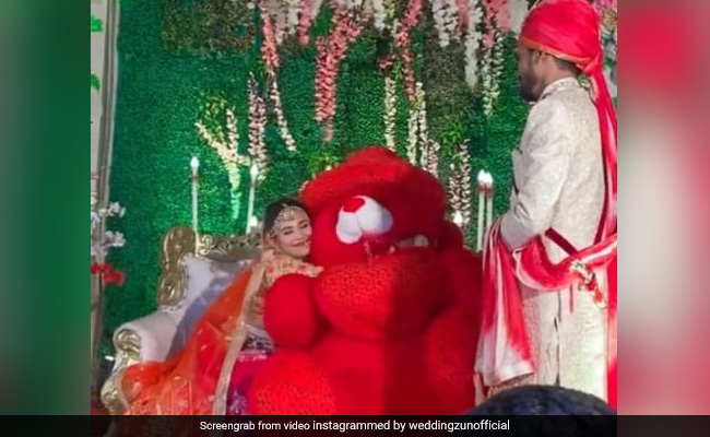 उसके इस हरकत से वहां मौजूद बारातियों को थोड़ी देर लिए कुछ भी समझ नहीं आता, लेकिन फोटो ग्राफर्स इस दुल्हन के फोटो और वीडियो लेने लगते हैं. सोशल मीडिया पर यह वीडियो तेजी से वायरल हो रहा है और यूजर्स इस वीडियो को काफी एंजॉय कर रहे हैं. इस वीडियो को वेडिंग अनऑफिशियल नाम के पेज से शेयर किया गया है. इस वीडियो को कैप्शन दिया गया है, जब दूल्हन को दूल्हे से ज्यादा टेडी बियर से प्यार हो.