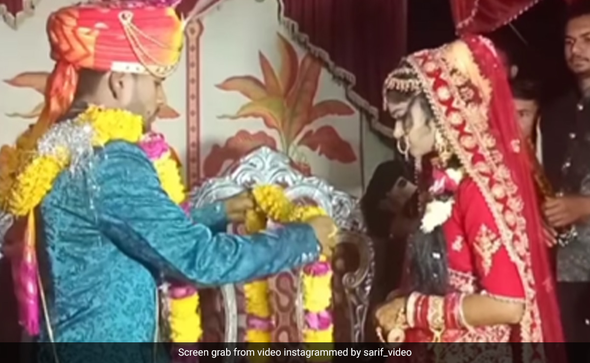 इंस्टाग्राम पर शेयर हुए वीडियो में देखा जा सकता है कि सूर्ख लाल जोड़े में दुल्हन और हरे रंग के कोर्ट में सजा दूल्हा जयमाला के लिए स्टेज पर खड़े हैं. घराती और बाराती दोनों ही पक्ष बड़े ही एक्साइटेड नजर आते हैं. लेकिन जैसे ही जयमाला शुरू होती है, सबके चेहरे से हवाइयां उड़ जाती हैं. लड़की पहले लड़के के गले में वरमाला उछाल देती है, जैसे बिना मन के वह इस रस्म को कर रही हो. वहीं दूल्हा तो एक कदम और आने निकलता है और काफी दूर से वरमाला उछाल देता है, जो लड़की के गले में पड़ता भी नहीं बल्कि नीचे गिर जाता है.