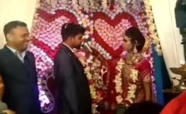 सोशल मीडिया में तेजी से वायरल हो रहे शादी वाले इस वीडियो में देखा जा सकता है कि दूल्हा और दुल्हन स्टेज पर खड़े हैं. वरमाला का कार्यक्रम हो चुका है. इसके बाद दूल्हा दुल्हन को मिठाई खिलाने के लिए हाथ बढ़ाता है, लेकिन दुल्हन मिठाई उसके हाथ से लेकर मेहमानों की तरफ फेंक देती है. इसके बाद दुल्हन दूल्हे को पानी पिलाने के लिए गिलास उसके मुंह की तरफ बढ़ाती है, लेकिन दूल्हा बदला लेते हुए गिलास को उलट देता है. इसके बाद दुल्हन को बहुत गुस्सा आ जाता है और वह गिलास को भी मेहमानों की तरफ फेंक देती है.