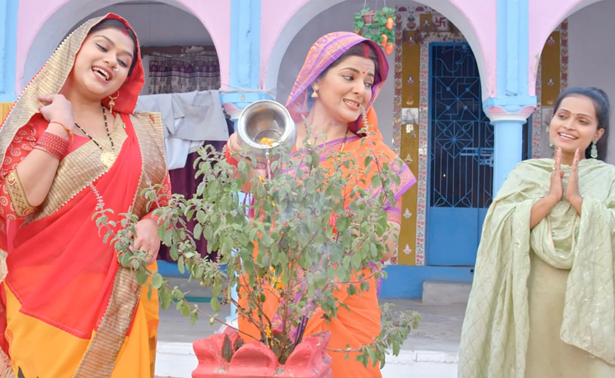 चला छठ गीत गावल जाय, घर अँगना सजावल जाय, नेहिया से नेहिया से घर परिवार साथे, हँसी खुशी के पल बितावल जाय...चला छठ गीत गावल जाय, चला छठ गीत गावल जाय...'