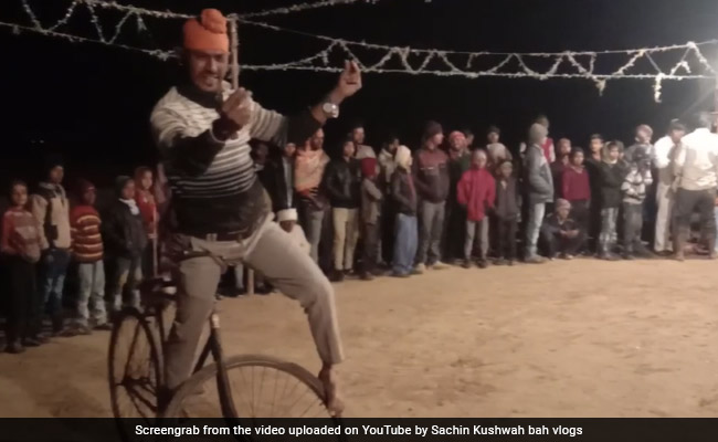 सोशल मीडिया पर एक वीडियो तेजी से वायरल हो रहा है. इस वीडियो में देखा जा सकता है की एक शख्स साइकल पर खड़े हो अनिल कपूर के गाने माई नेम इज लखन पर जमकर डांस कर रहा है. ये शख्स ना केवल डांस बल्की साइकल पर खड़े हो शानदार करतब भी दिखा रहा है. शख्स का डांस देखने के लिए देर रात में भी लोगों की भीड़ जमा हो गई है. इस शख्स के साथ ही एक दूसरा शख्स भी करतब दिखाने में कोई कसर नहीं छोड़ रहा है. वहीं इस वीडियो में तीसरे शख्स को भी देखा जा सकता है जो चुनरी ओढ़ लोगों का मनोरंजन कर रहा है.