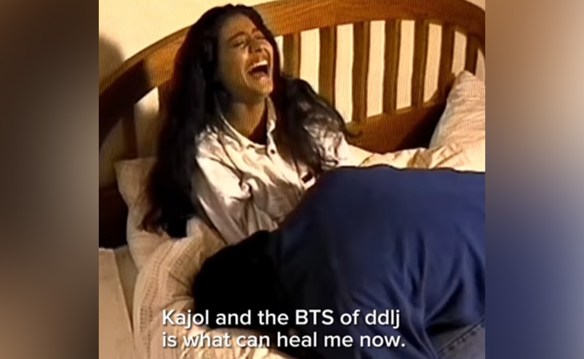 काजोल अगर आप की फेवरेट एक्ट्रेस हैं तो उनकी हंसी से आप जरूर वाकिफ होंगे. काजोल जब मुस्कुराती हैं तो उसके साथ उनकी आंखों की चमक भी बढ़ जाती है. बस उनके चेहरे की यही रौनक काफी होती है किसी का भी दिन बना देने के लिए. अगर आपका भी दिन कुछ उबाऊ, बोरिंग या बोझिल सा गुजरा है तो आप भी काजोल का चुलबुला अंदाज देखकर अपना दिन खास बना सकते हैं. उनकी फिल्म दिल वाले दुल्हनिया ले जाएंगे के बिहाइंड द सीन वीडियोज वायरल हो रहे हैं, जिसमें काजोल की मस्ती और उसमें शाहरुख खान का उनको साथ देना फैन्स को काफी पसंद आ रहा है.