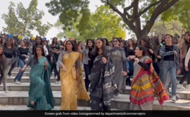 प्रोफेसर और स्टूडेंट्स का यह डांस वीडियो दिल्ली यूनिवर्सिटी के जीसस एंड मैरी कॉलेज के कॉमर्स विभाग का है. इस छोटे से वीडियो में स्टूडेंट्स को कॉलेज के एम्फीथिएटर में गाने पर झूमते हुए देखा जा सकता है. कुछ ही सेकंड में, चार प्रोफेसर, साड़ी पहने हुए एंट्री करती हैं. सभी प्रोफेसर स्टूडेंट्स के साथ गाने के हुक स्टेप परफॉर्म करते नजर आ रही हैं. सोशल मीडिया पर प्रोफेसर और स्टूडेंट्स का यह वीडियो जमकर वायरल हो रहा है.