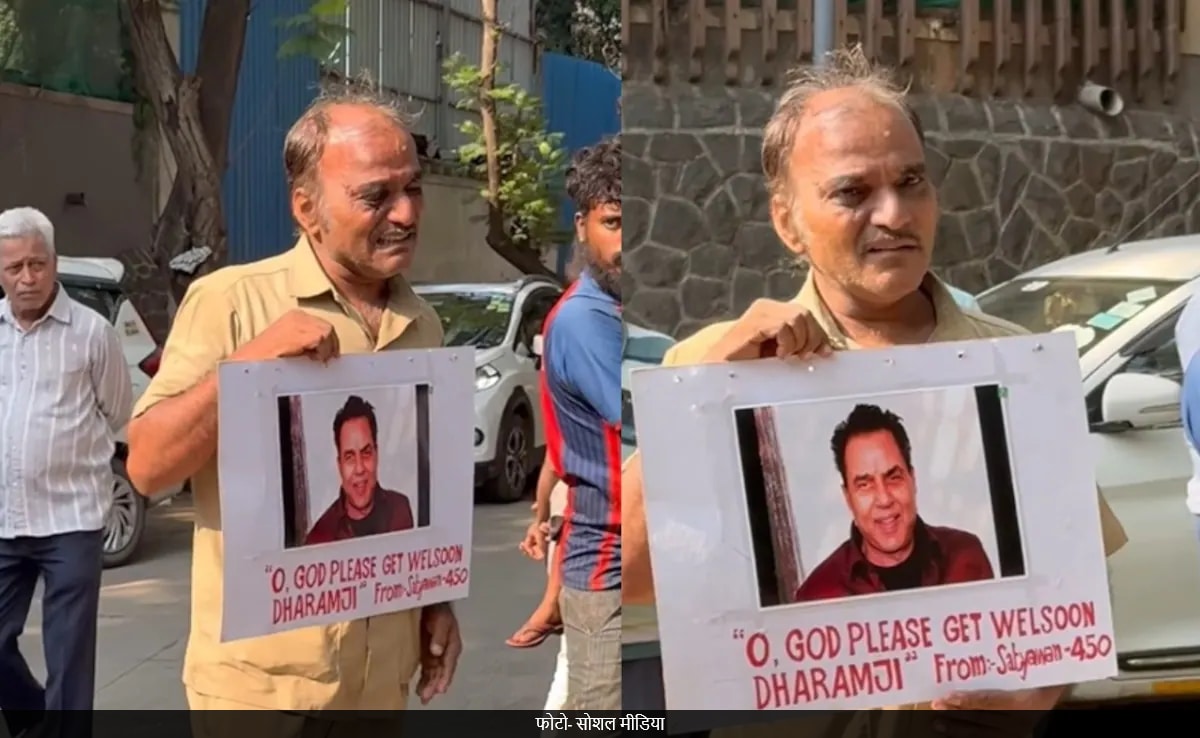 धर्मेंद्र के लाखों फैन्स हैं. जो शायद अपने बचपन के दिनों से ही उन्हें दिल से चाहते हैं. अब जब ये खबरें आईं कि धर्मेंद्र की सेहत खराब है और वो अस्पताल में भर्ती हैं. तब धर्मेंद्र के फैन्स के दिलों में भी हलचल मच गई. हर फैन् उन्हें सेहतयाब रखने की दुआ मांगने लगा. जिससे जैसा बन पड़ा होगा. उसने शायद उस तरह से प्रार्थना की होगी. लेकिन एक फैन अपने जज्बातों पर काबू नहीं रख पाया. धर्मेंद्र की सेहत की दुआ मांगते मांगते ये फैन फूट फूट कर रो पड़ा. इंस्टाग्राम पर उसका वीडियो तेजी से वायरल हो रहा है. उसके हाथ में एक तख्ती भी है जिसमें लिखा है कि गेट वेल सून धरमजी. और धर्मेंद्र की फोटो भी लगी है. फैन की आंखों में आंसू साफ बता रहे हैं कि वो अपने फेवरेट स्टार के लिए कितना दुखी है.
