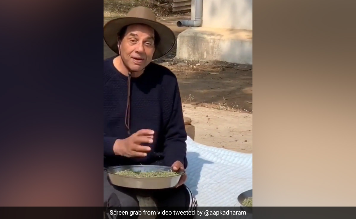 वीडियो में सुपरस्टार कहते हैं, ''हैलो दोस्तों... आप सोच रहे होंगे कि हमारा धर्मेंद्र कर क्या रहा है...यह सब क्या है... ये मेथी है दोस्तों तोड़कर सिखाया है इसको अब इसको परांठे में डालकर पराठा बनेंगे, सब्जी बनेगी और मक्खन के साथ खाएंगे. गांव वालों की जिंदगी बसर कर रहा हूं. ये है मेरी चारपाई. अच्छा लग रहा है. जानें क्यों आपसे शेयर करने को दिल करता है ये सब चीजें..'