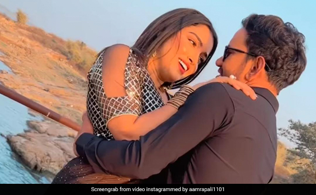 भोजपुरी सुपरस्टार दिनेश लाल यादव और आम्रपाली दुबे भोजपूरी इंडस्ट्री के जाने माने चेहरे हैं. दोनों की हिट जोड़ी है, इनकी फिल्में और गाने फैंस काफी पसंद करते हैं. हाल ही में सोशल मीडिया पर एक वीडियो वायरल हो रहा है, जिसमें दोनों समंदर किनारे रोमांस करते दिख रहे हैं.ब्लैक शर्ट और जिंस में निरहुआ काफी स्मार्ट लग रहे हैं तो वहीं काली साड़ी में आम्रपाली भी कयामत ढा रही हैं. दोनों का यह वीडियो तेजी से वायरल हो रहा है.