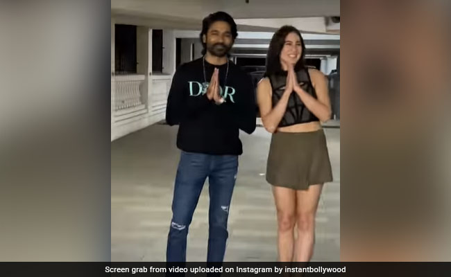 इंटरनेट पर इन दिनों धनुष और सारा अली खान का एक वीडियो तेजी से वायरल हो रहा है. इस वीडियो में 'द ग्रे मैन' एक्टर धनुष रितेश सिधवानी की पार्टी में एंट्री करते हुए नजर आ रहे हैं. धनुष के साथ वीडियो में नजर आ रही हैं उनकी 'अतरंगी रे' की को-एक्ट्रेस सारा अली खान. वीडियो में आप देख सकते हैं कि सारा धनुष के हाथों में हाथ डाले अंदर आते हुए मुस्कुराते हुए पोज़ देती हैं. इस वीडियो में वे अपने पॉपुलर नमस्ते स्टाइल से पैपराजी का अभिवादन करती हैं. उन्हें देख धनुष भी नमस्ते करते हैं. वीडियो में सारा ब्लैक कलर का टॉप और ग्रीन कलर की शॉर्ट स्कर्ट पहने हुए गॉर्जियस लग रही हैं. वहीं धनुष ब्लैक कलर की फुल स्लीव टीशर्ट और डेनिम जींस पहने हुए हैंडसम नजर आ रहे हैं.