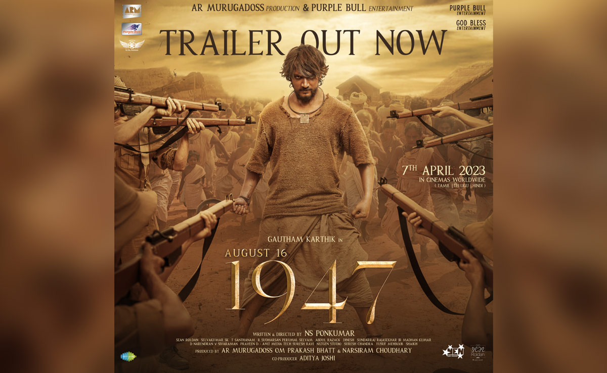फिल्म के निर्माताओं ने मंगलवार को '16 अगस्त 1947 (August 16 1947 Trailer)' का ट्रेलर आउट कर दिया है. ट्रेलर को देख कर अंदाजा लगाया जा सकता है कि कहानी बहुत दिलचस्प होने वाली है. ट्रेलर को देखने के बाद फैन्स के बीच उत्सुकता काफी बढ़ गई है. फिल्म 7 अप्रैल को सिनामघरों में दस्तक देगी. इस फिल्म को तमिल, तेलुगु, कन्नड़, हिंदी, मलयालम और अंग्रेजी भाषा में रिलीज किया जाएगा. फिल्म को 'गजनी' और 'हॉलिडे' जैसी फिल्में देने वाले जाने-माने निर्देशक एआर मुरुगादॉस ने डायरेक्ट किया है.