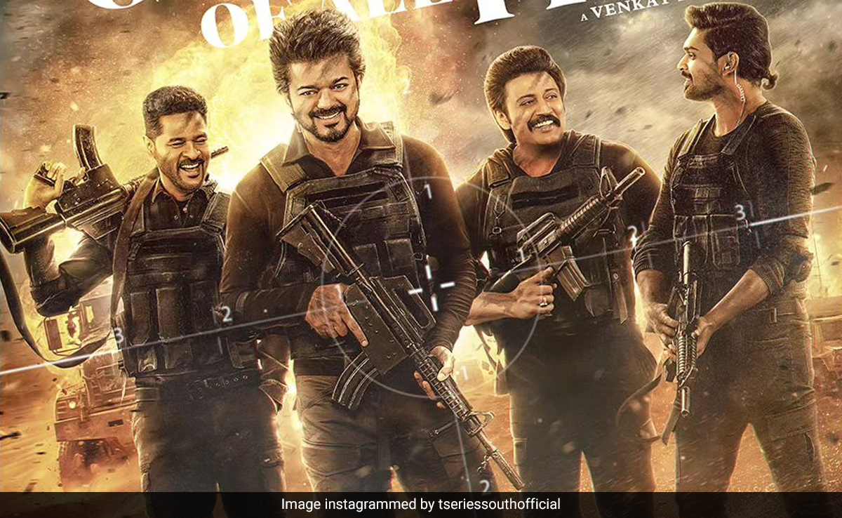 द ग्रेटेस्ट ऑफ ऑल टाइम (GOAT) के इस पोस्टर में थलापति विजय का जबरदस्त लुक देखा जा सकता है. इस पोस्टर में देखा जा सकता है कि विजय एक कमांडो की ड्रेस में बंदूक लेकर बीच में खड़े हैं. उनके साथ उनका पूरा स्क्वॉड नजर आ रहा है. विजय के अलावा पोस्टर में मशहूर कोरियोग्राफर प्रभुदेवा को भी देखा जा सकता है. प्रभुदेवा भी हाथ में बंदूक लिए नजर आ रहे हैं. उनके अलावा पोस्टर में एक्टर प्रशांत और अजमल नजर आ रहे हैं. ये सभी एक बैटल ग्राउंड में खड़े हैं और ऊपर हेलीकॉप्टर उड़ रहे हैं.